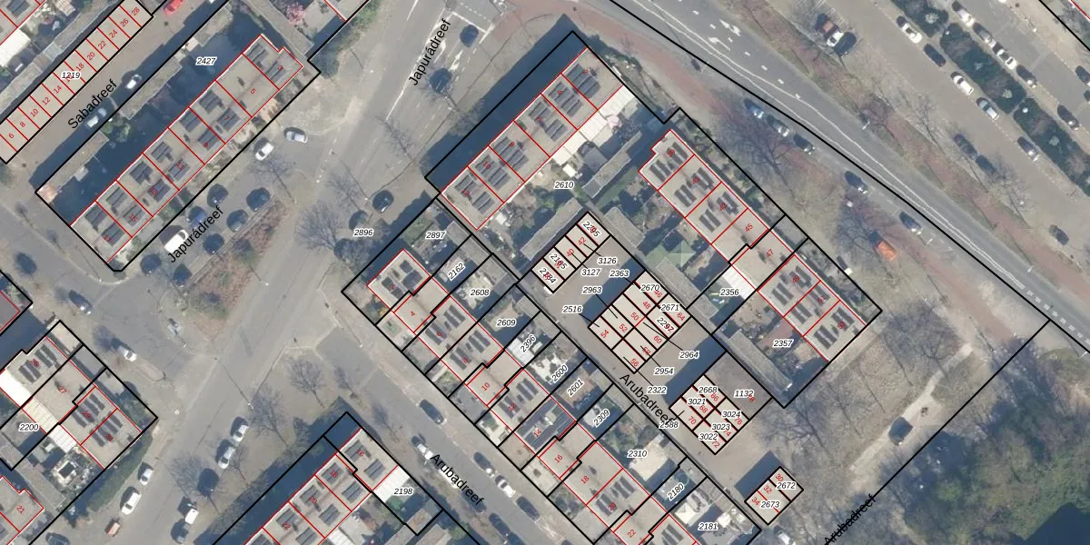 Het perceel waarop Arubadreef 36 staat heeft een oppervlakte van 19 m². Dit is een klein perceel. De perceeloppervlakte wordt geregistreerd door het Kadaster. Gedetailleerde informatie over de maten van dit perceel kunt u vinden in het rapport Kadastrale kaart met maatvoering van Arubadreef 36.