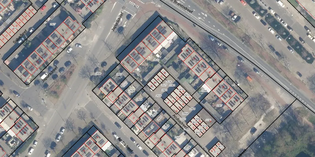 Het perceel waarop Arubadreef 40 staat heeft een oppervlakte van 17 m². Dit is een klein perceel. De perceeloppervlakte wordt geregistreerd door het Kadaster. Gedetailleerde informatie over de maten van dit perceel kunt u vinden in het rapport Kadastrale kaart met maatvoering van Arubadreef 40.