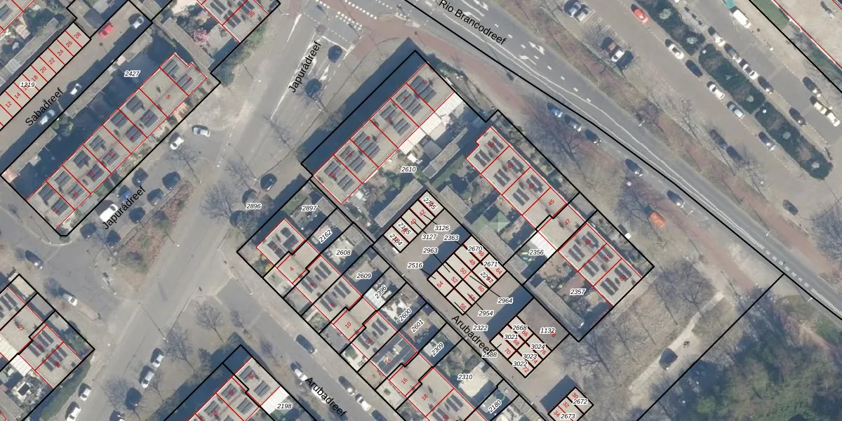 Het perceel waarop Arubadreef 42 staat heeft een oppervlakte van 17 m². Dit is een klein perceel. De perceeloppervlakte wordt geregistreerd door het Kadaster. Gedetailleerde informatie over de maten van dit perceel kunt u vinden in het rapport Kadastrale kaart met maatvoering van Arubadreef 42.