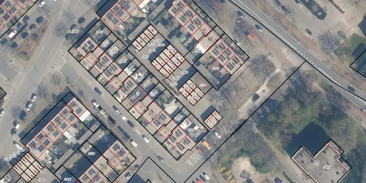 Arubadreef 70 is gelegen op kadastraal perceel UTT00F2588. Deze kadastrale aanduiding is uniek en wordt gebruikt door het Kadaster om eigendomsrechten en andere zakelijke rechten vast te leggen. Het perceel maakt onderdeel uit van de kadastrale gemeente Utrecht.