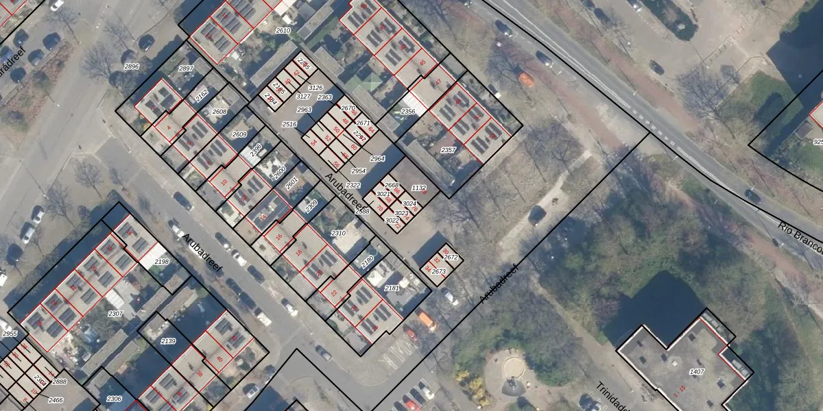 Het perceel waarop Arubadreef 76 staat heeft een oppervlakte van 17 m². Dit is een klein perceel. De perceeloppervlakte wordt geregistreerd door het Kadaster. Gedetailleerde informatie over de maten van dit perceel kunt u vinden in het rapport Kadastrale kaart met maatvoering van Arubadreef 76.