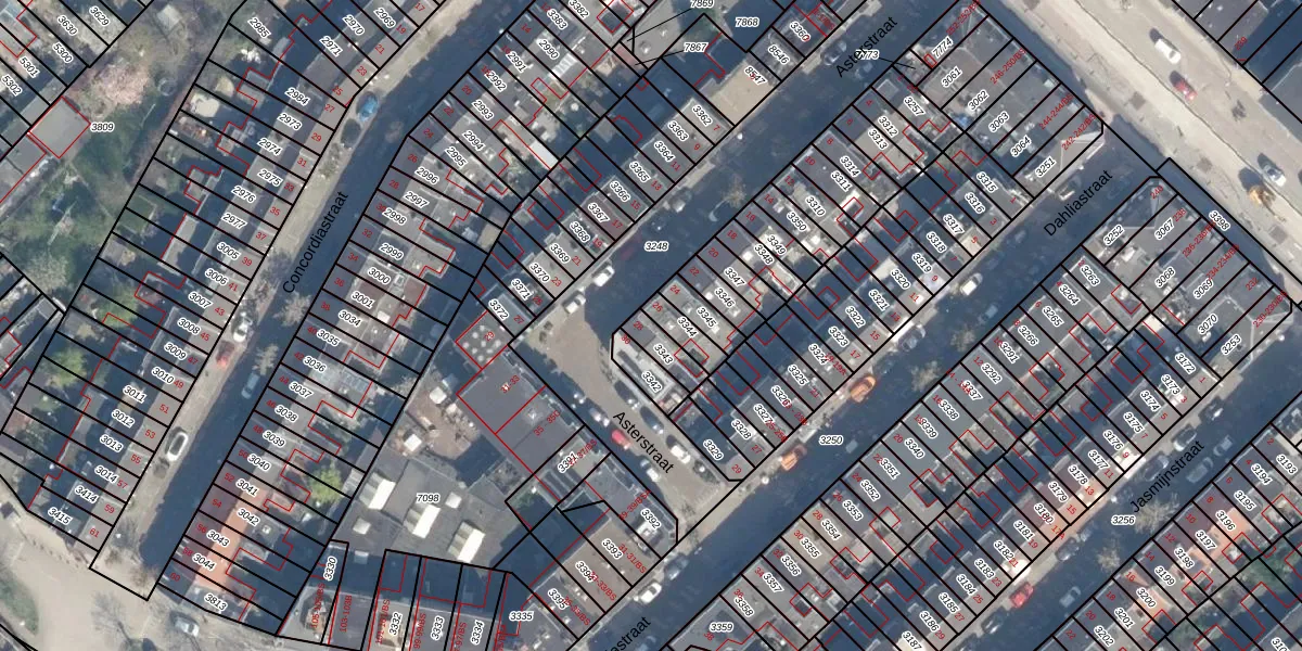 Gebruik de zoekbalk of klik op een perceel voor informatie over de adressen binnen dit perceel.
