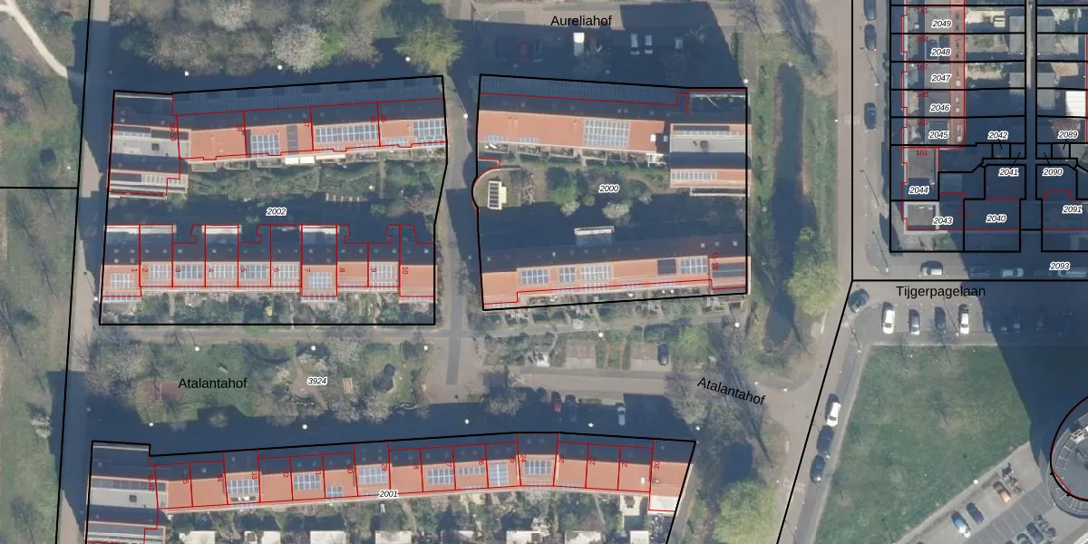Atalantahof 13 is gelegen op kadastraal perceel UTT00V2000. Deze kadastrale aanduiding is uniek en wordt gebruikt door het Kadaster om eigendomsrechten en andere zakelijke rechten vast te leggen. Het perceel maakt onderdeel uit van de kadastrale gemeente Utrecht.