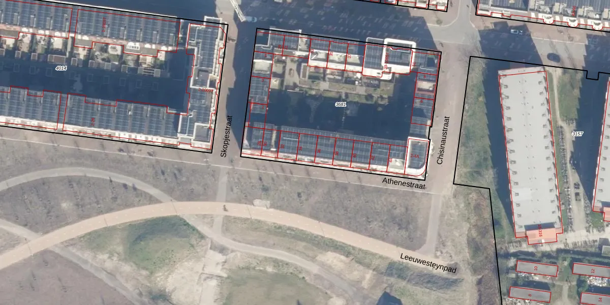 Het perceel waarop Athenestraat 34 staat heeft een oppervlakte van 2583 m². Dit is een zeer groot perceel. De perceeloppervlakte wordt geregistreerd door het Kadaster. Gedetailleerde informatie over de maten van dit perceel kunt u vinden in het rapport Kadastrale kaart met maatvoering van Athenestraat 34.