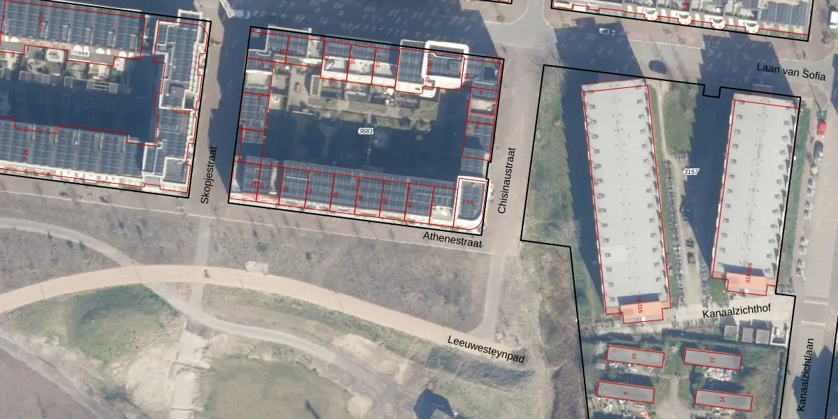 Het perceel waarop Athenestraat 42 staat heeft een oppervlakte van 2583 m². Dit is een zeer groot perceel. De perceeloppervlakte wordt geregistreerd door het Kadaster. Gedetailleerde informatie over de maten van dit perceel kunt u vinden in het rapport Kadastrale kaart met maatvoering van Athenestraat 42.
