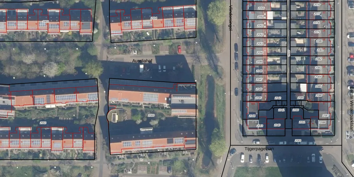 Aureliahof 21 is gelegen op kadastraal perceel UTT00V2000. Deze kadastrale aanduiding is uniek en wordt gebruikt door het Kadaster om eigendomsrechten en andere zakelijke rechten vast te leggen. Het perceel maakt onderdeel uit van de kadastrale gemeente Utrecht.