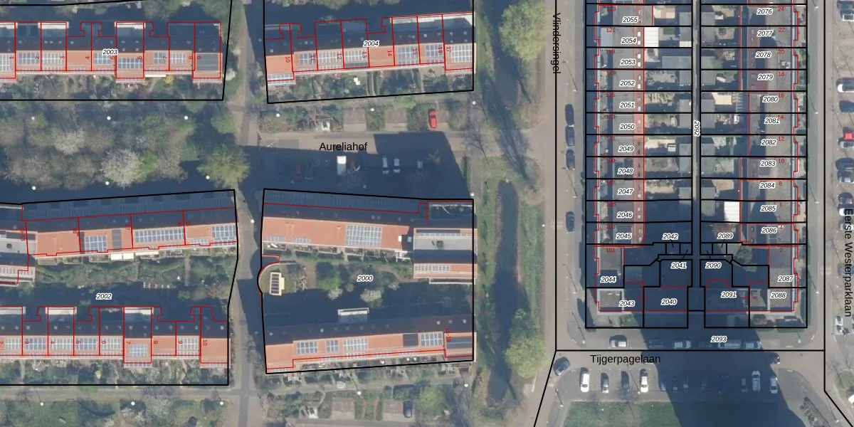 Aureliahof 25 is gelegen op kadastraal perceel UTT00V2000. Deze kadastrale aanduiding is uniek en wordt gebruikt door het Kadaster om eigendomsrechten en andere zakelijke rechten vast te leggen. Het perceel maakt onderdeel uit van de kadastrale gemeente Utrecht.