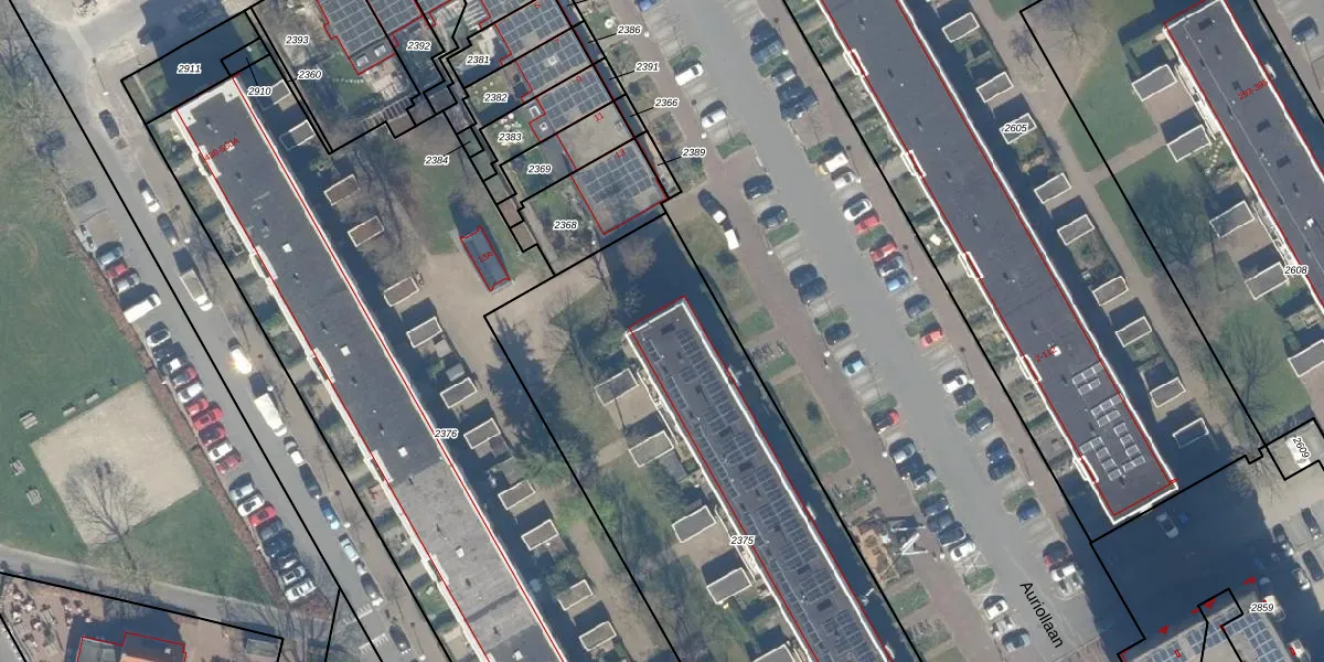 Het perceel waarop Auriollaan 15 staat heeft een oppervlakte van 2989 m². Dit is een zeer groot perceel. De perceeloppervlakte wordt geregistreerd door het Kadaster. Gedetailleerde informatie over de maten van dit perceel kunt u vinden in het rapport Kadastrale kaart met maatvoering van Auriollaan 15.