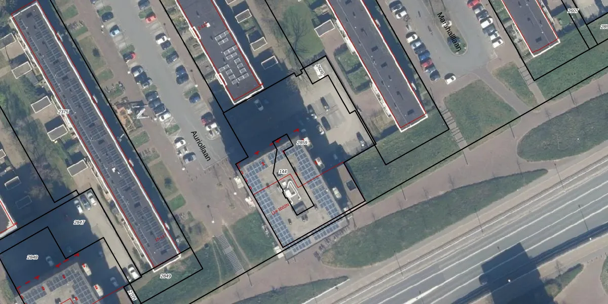 Het perceel waarop Auriollaan 182 staat heeft een oppervlakte van 1587 m². Dit is een zeer groot perceel. De perceeloppervlakte wordt geregistreerd door het Kadaster. Gedetailleerde informatie over de maten van dit perceel kunt u vinden in het rapport Kadastrale kaart met maatvoering van Auriollaan 182.