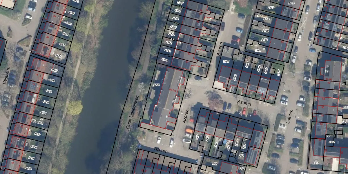 Het perceel waarop Azoren 67 staat heeft een oppervlakte van 755 m². Dit is een groot perceel. De perceeloppervlakte wordt geregistreerd door het Kadaster. Gedetailleerde informatie over de maten van dit perceel kunt u vinden in het rapport Kadastrale kaart met maatvoering van Azoren 67.