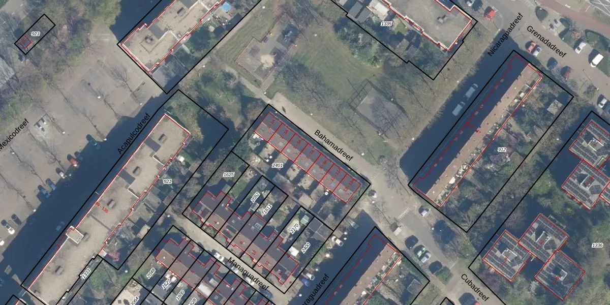 Het perceel waarop Bahamadreef 7 staat heeft een oppervlakte van 1115 m². Dit is een zeer groot perceel. De perceeloppervlakte wordt geregistreerd door het Kadaster. Gedetailleerde informatie over de maten van dit perceel kunt u vinden in het rapport Kadastrale kaart met maatvoering van Bahamadreef 7.