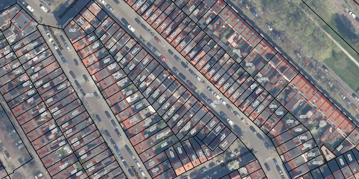 Gebruik de zoekbalk of klik op een perceel voor informatie over de adressen binnen dit perceel.