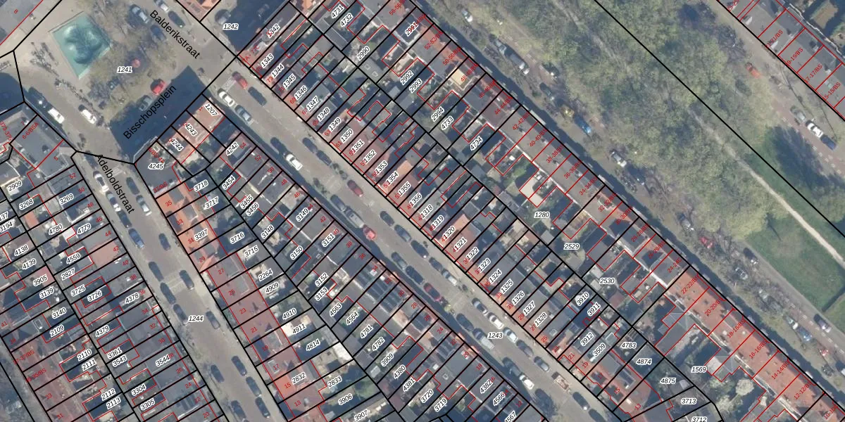 Het perceel waarop Balderikstraat 47 staat heeft een oppervlakte van 67 m². Dit is een klein perceel. De perceeloppervlakte wordt geregistreerd door het Kadaster. Gedetailleerde informatie over de maten van dit perceel kunt u vinden in het rapport Kadastrale kaart met maatvoering van Balderikstraat 47.