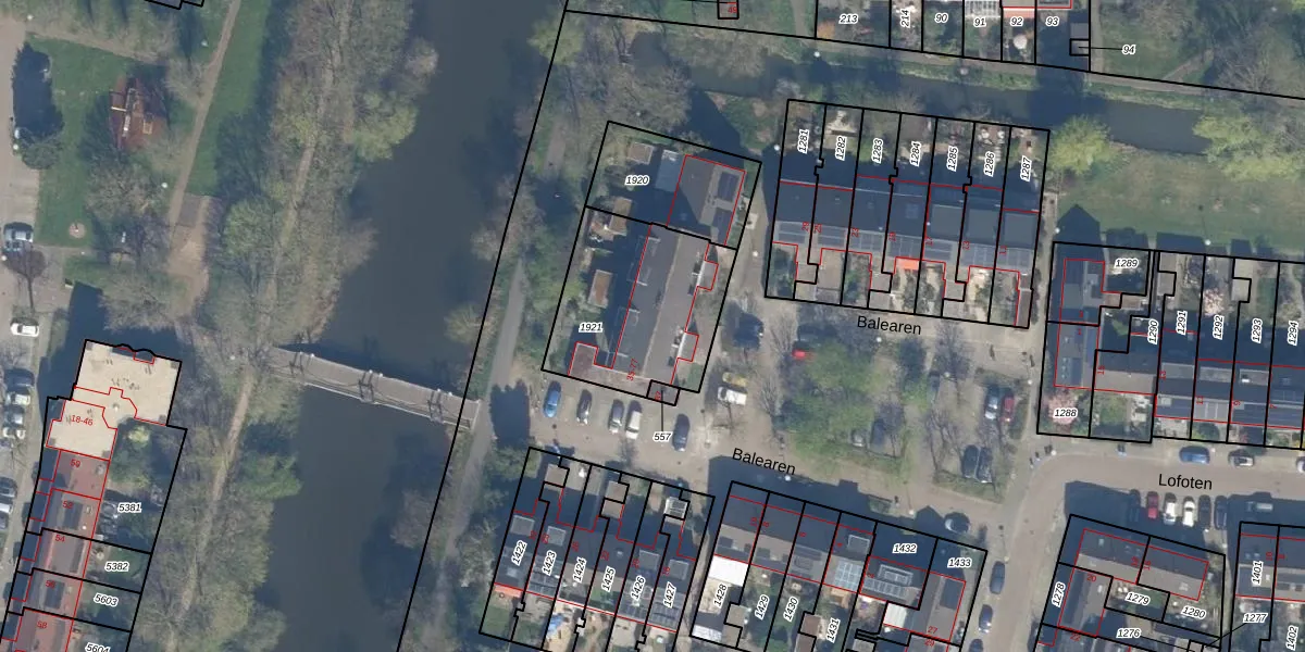 Het perceel waarop Balearen 65 staat heeft een oppervlakte van 605 m². Dit is een groot perceel. De perceeloppervlakte wordt geregistreerd door het Kadaster. Gedetailleerde informatie over de maten van dit perceel kunt u vinden in het rapport Kadastrale kaart met maatvoering van Balearen 65.