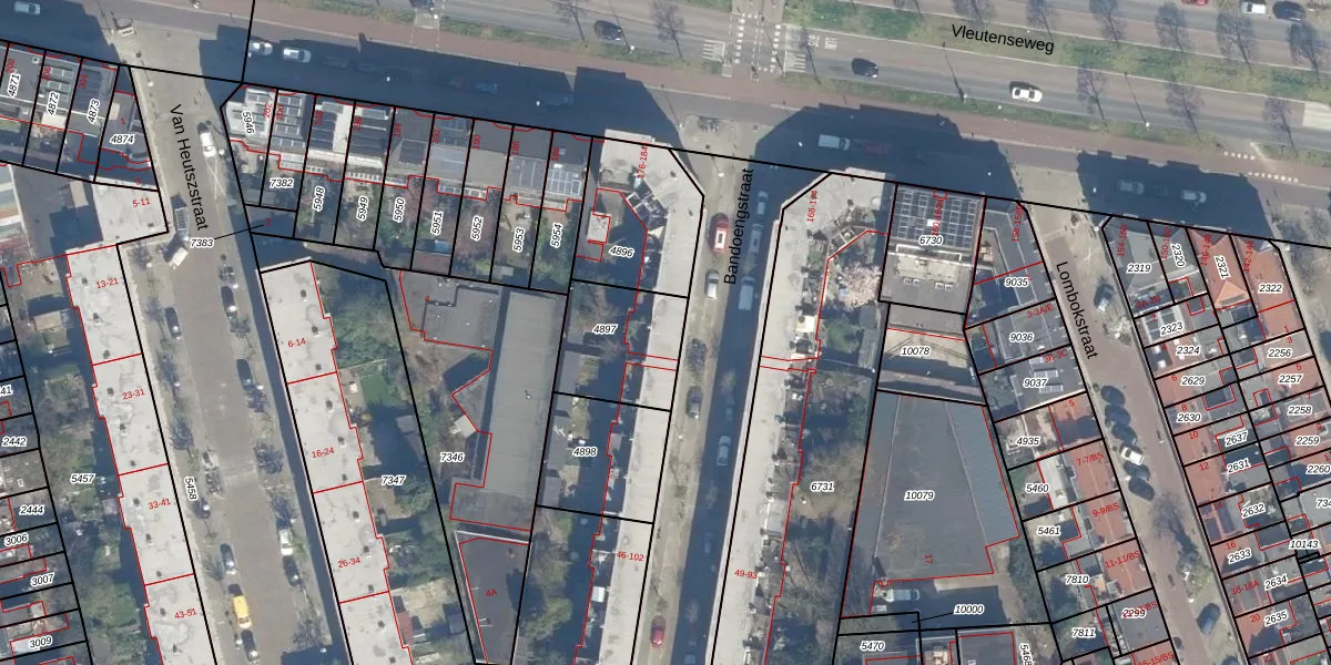 Het perceel waarop Bandoengstraat 94 staat heeft een oppervlakte van 308 m². Dit is een groot perceel. De perceeloppervlakte wordt geregistreerd door het Kadaster. Gedetailleerde informatie over de maten van dit perceel kunt u vinden in het rapport Kadastrale kaart met maatvoering van Bandoengstraat 94.