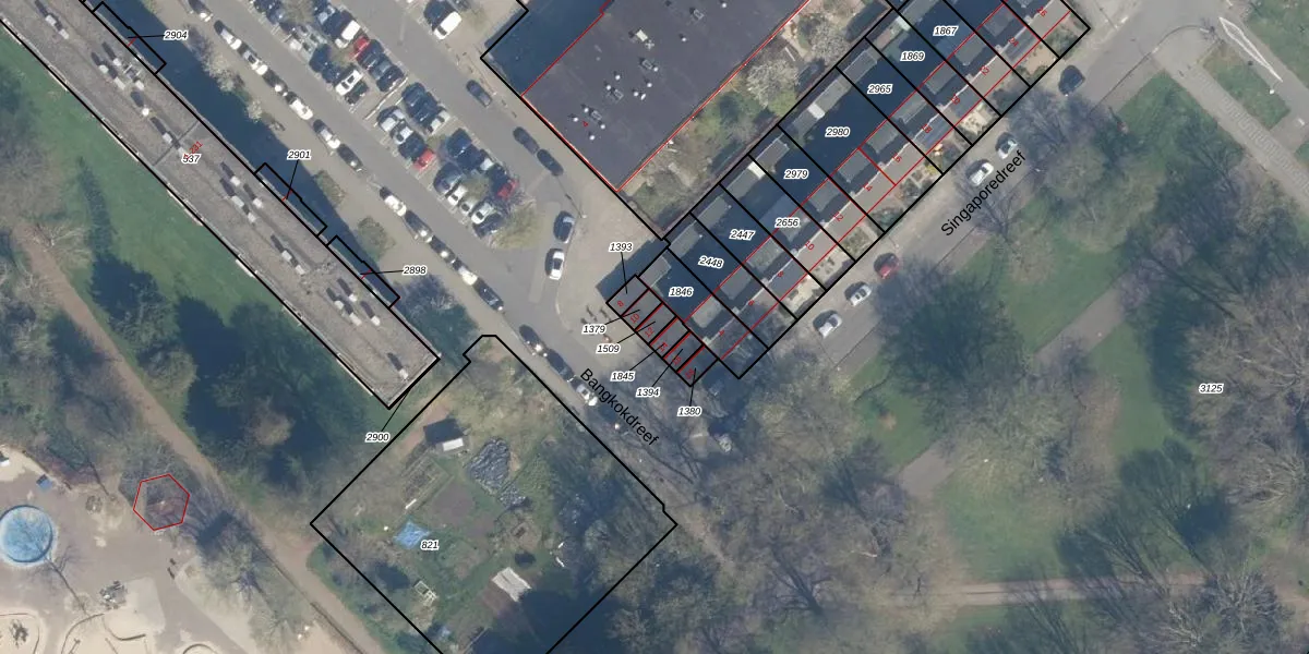 Het perceel waarop Bangkokdreef 12 staat heeft een oppervlakte van 18 m². Dit is een klein perceel. De perceeloppervlakte wordt geregistreerd door het Kadaster. Gedetailleerde informatie over de maten van dit perceel kunt u vinden in het rapport Kadastrale kaart met maatvoering van Bangkokdreef 12.