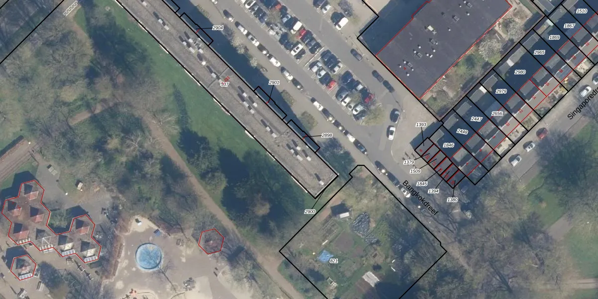 Het perceel waarop Bangkokdreef 213 staat heeft een oppervlakte van 1091 m². Dit is een zeer groot perceel. De perceeloppervlakte wordt geregistreerd door het Kadaster. Gedetailleerde informatie over de maten van dit perceel kunt u vinden in het rapport Kadastrale kaart met maatvoering van Bangkokdreef 213.