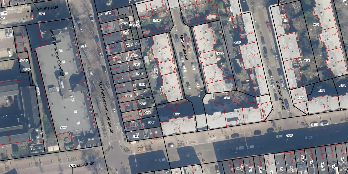 Bantamstraat 10 is gelegen op kadastraal perceel CTR00C4755. Deze kadastrale aanduiding is uniek en wordt gebruikt door het Kadaster om eigendomsrechten en andere zakelijke rechten vast te leggen. Het perceel maakt onderdeel uit van de kadastrale gemeente Catharijne.