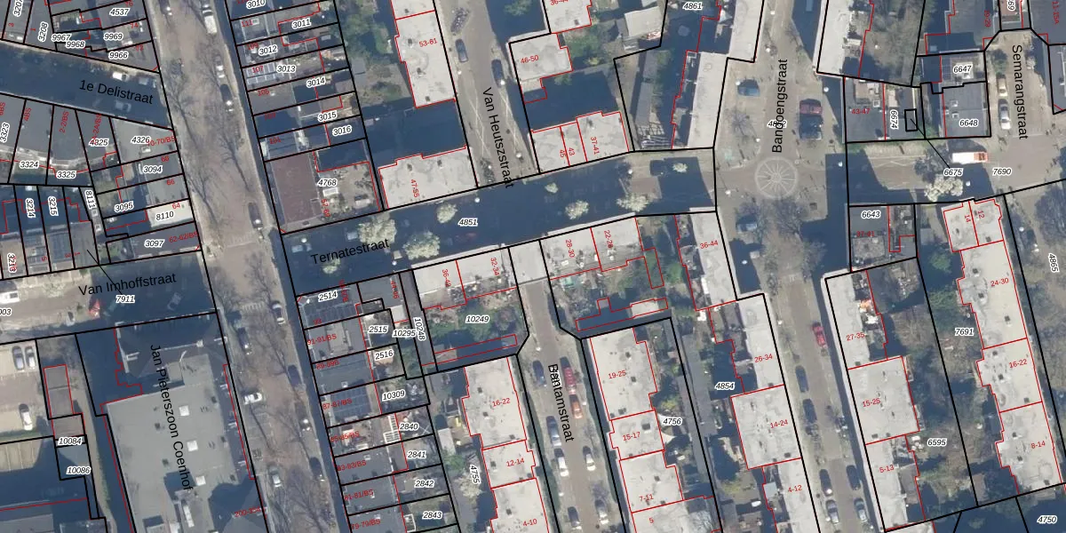 Bantamstraat 26 is gelegen op kadastraal perceel CTR00C4853. Deze kadastrale aanduiding is uniek en wordt gebruikt door het Kadaster om eigendomsrechten en andere zakelijke rechten vast te leggen. Het perceel maakt onderdeel uit van de kadastrale gemeente Catharijne.