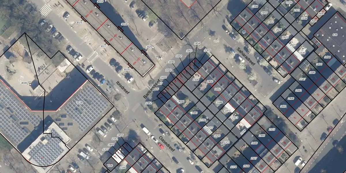 Gebruik de zoekbalk of klik op een perceel voor informatie over de adressen binnen dit perceel.