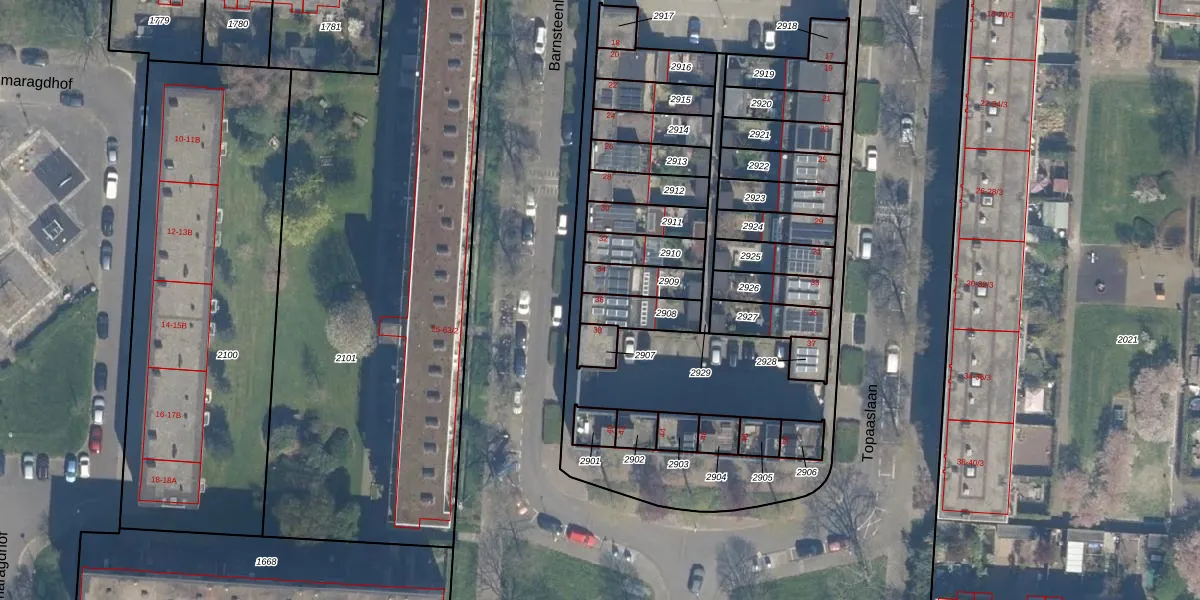 Gebruik de zoekbalk of klik op een perceel voor informatie over de adressen binnen dit perceel.