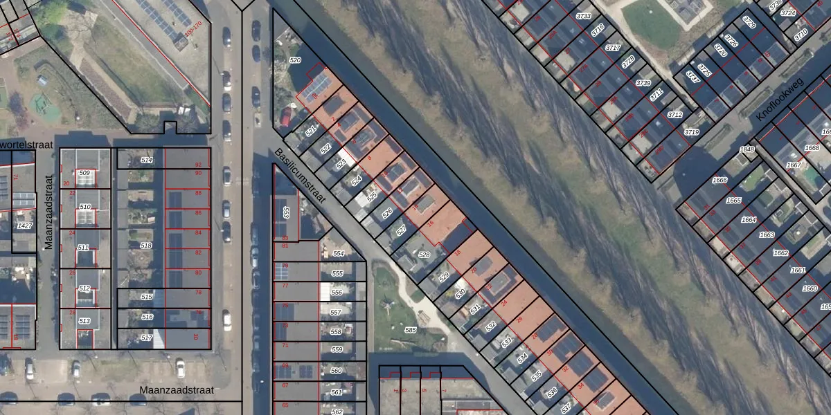 Het perceel waarop Basilicumstraat 14 staat heeft een oppervlakte van 108 m². Dit is een middelgroot perceel. De perceeloppervlakte wordt geregistreerd door het Kadaster. Gedetailleerde informatie over de maten van dit perceel kunt u vinden in het rapport Kadastrale kaart met maatvoering van Basilicumstraat 14.