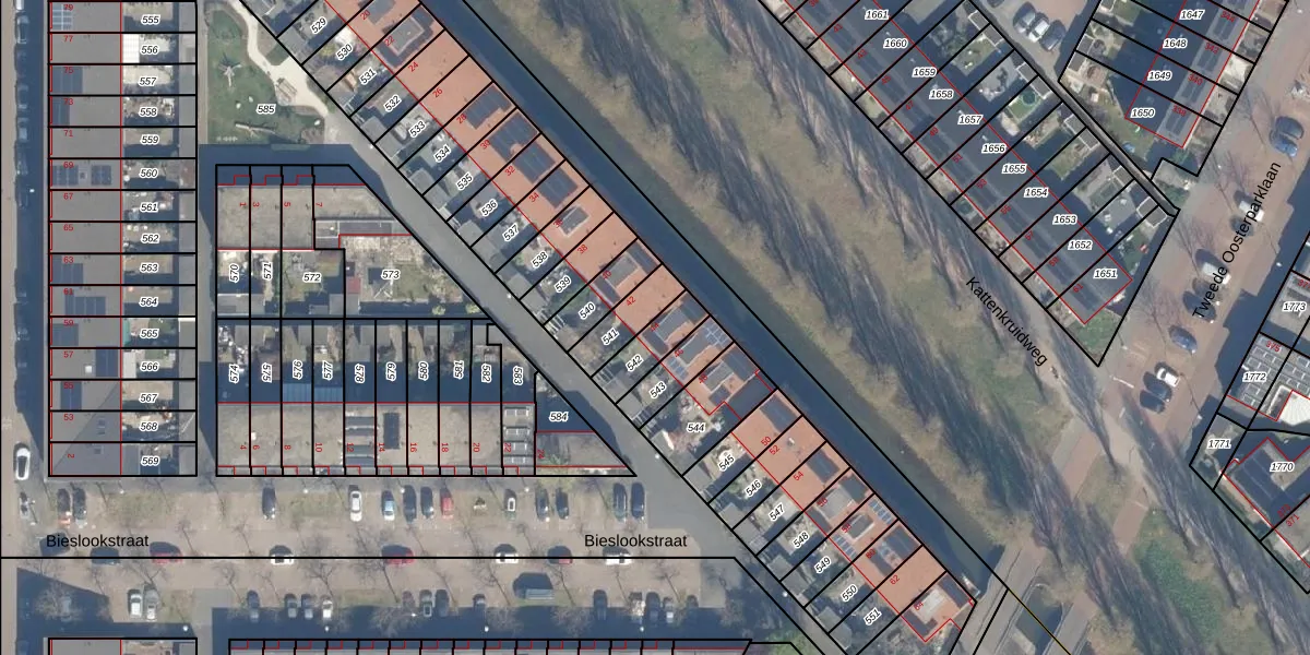 Gebruik de zoekbalk of klik op een perceel voor informatie over de adressen binnen dit perceel.