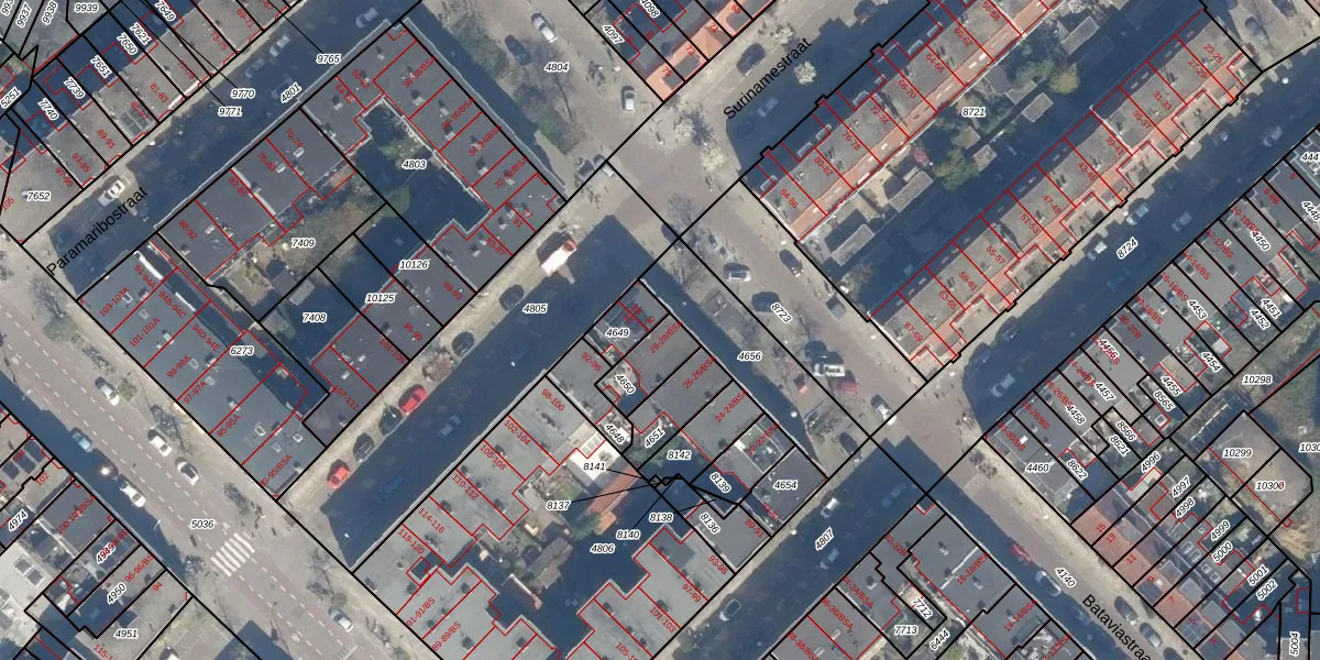 Het perceel waarop Bataviastraat 28 staat heeft een oppervlakte van 110 m². Dit is een middelgroot perceel. De perceeloppervlakte wordt geregistreerd door het Kadaster. Gedetailleerde informatie over de maten van dit perceel kunt u vinden in het rapport Kadastrale kaart met maatvoering van Bataviastraat 28.