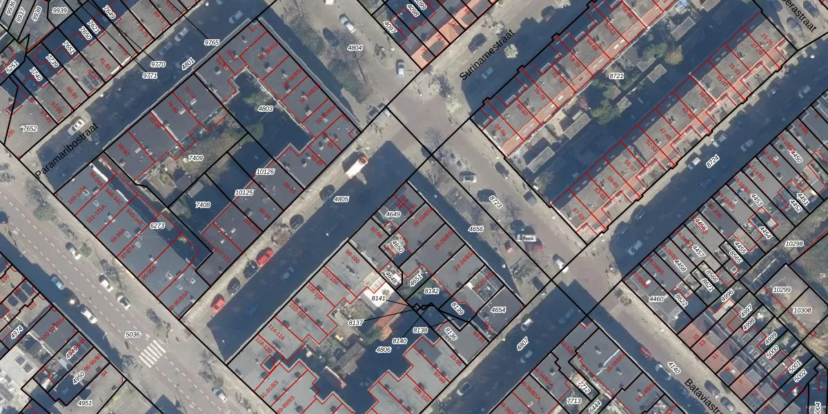 Het perceel waarop Bataviastraat 30 staat heeft een oppervlakte van 88 m². Dit is een klein perceel. De perceeloppervlakte wordt geregistreerd door het Kadaster. Gedetailleerde informatie over de maten van dit perceel kunt u vinden in het rapport Kadastrale kaart met maatvoering van Bataviastraat 30.