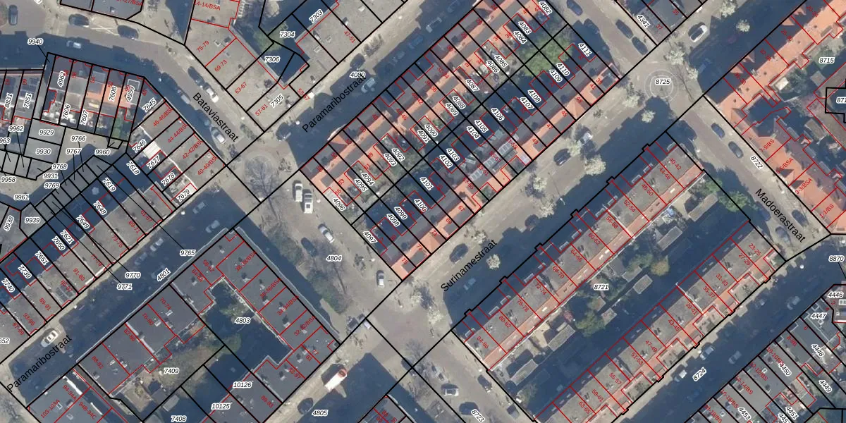 Het perceel waarop Bataviastraat 43 staat heeft een oppervlakte van 84 m². Dit is een klein perceel. De perceeloppervlakte wordt geregistreerd door het Kadaster. Gedetailleerde informatie over de maten van dit perceel kunt u vinden in het rapport Kadastrale kaart met maatvoering van Bataviastraat 43.