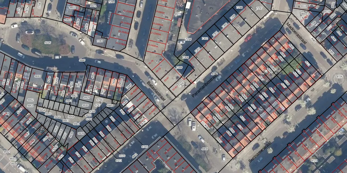 Het perceel waarop Bataviastraat 61 staat heeft een oppervlakte van 105 m². Dit is een middelgroot perceel. De perceeloppervlakte wordt geregistreerd door het Kadaster. Gedetailleerde informatie over de maten van dit perceel kunt u vinden in het rapport Kadastrale kaart met maatvoering van Bataviastraat 61.