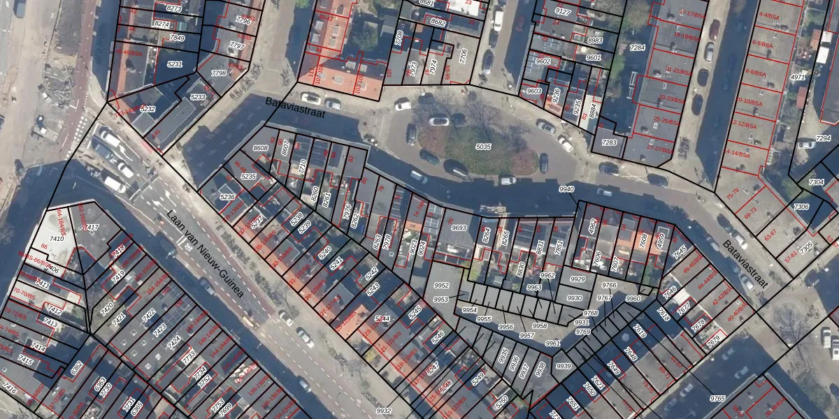 Het perceel waarop Bataviastraat 74-A staat heeft een oppervlakte van 89 m². Dit is een klein perceel. De perceeloppervlakte wordt geregistreerd door het Kadaster. Gedetailleerde informatie over de maten van dit perceel kunt u vinden in het rapport Kadastrale kaart met maatvoering van Bataviastraat 74-A.