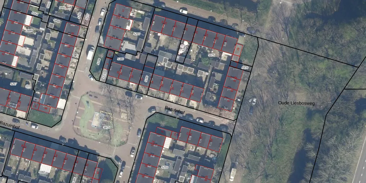 Het perceel waarop Bazuinhof 17 staat heeft een oppervlakte van 2822 m². Dit is een zeer groot perceel. De perceeloppervlakte wordt geregistreerd door het Kadaster. Gedetailleerde informatie over de maten van dit perceel kunt u vinden in het rapport Kadastrale kaart met maatvoering van Bazuinhof 17.