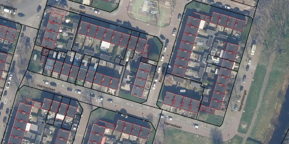 Het perceel waarop Bazuinhof 36 staat heeft een oppervlakte van 2329 m². Dit is een zeer groot perceel. De perceeloppervlakte wordt geregistreerd door het Kadaster. Gedetailleerde informatie over de maten van dit perceel kunt u vinden in het rapport Kadastrale kaart met maatvoering van Bazuinhof 36.
