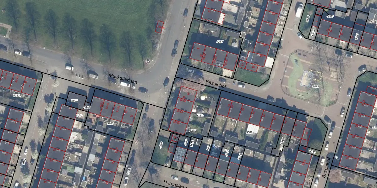 Het perceel waarop Bazuinhof 49 staat heeft een oppervlakte van 725 m². Dit is een groot perceel. De perceeloppervlakte wordt geregistreerd door het Kadaster. Gedetailleerde informatie over de maten van dit perceel kunt u vinden in het rapport Kadastrale kaart met maatvoering van Bazuinhof 49.