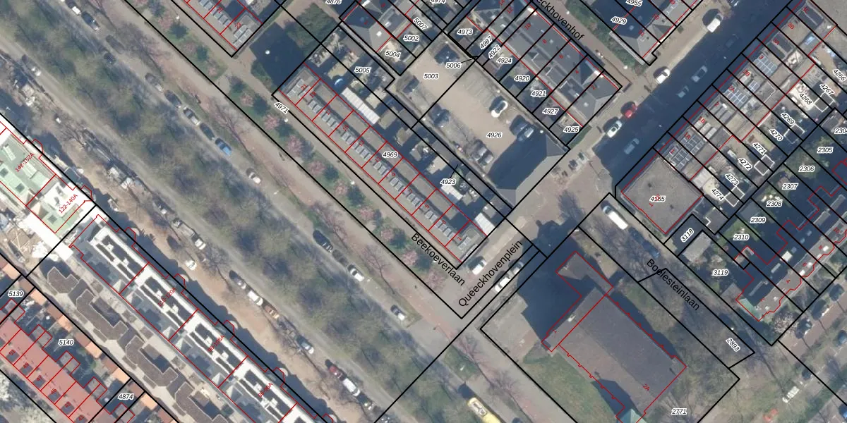 Beekoeverlaan 5 is gelegen op kadastraal perceel ZLN02B4969. Deze kadastrale aanduiding is uniek en wordt gebruikt door het Kadaster om eigendomsrechten en andere zakelijke rechten vast te leggen. Het perceel maakt onderdeel uit van de kadastrale gemeente Zuilen.