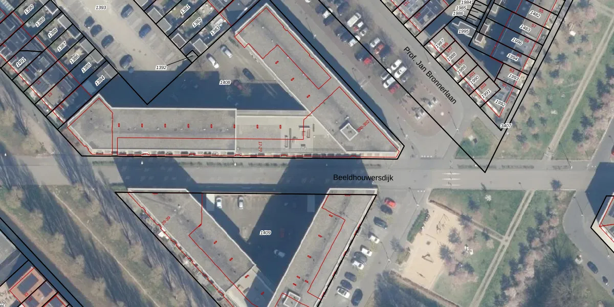 Het perceel waarop Beeldhouwersdijk 25 staat heeft een oppervlakte van 3155 m². Dit is een zeer groot perceel. De perceeloppervlakte wordt geregistreerd door het Kadaster. Gedetailleerde informatie over de maten van dit perceel kunt u vinden in het rapport Kadastrale kaart met maatvoering van Beeldhouwersdijk 25.
