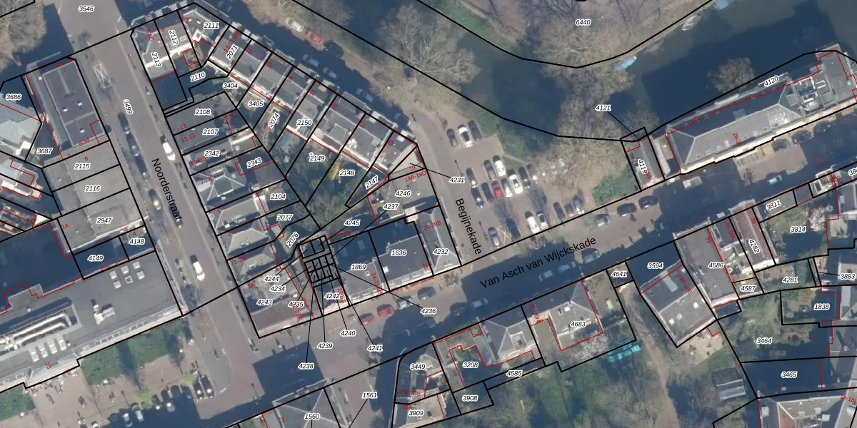 Het perceel waarop Begijnekade 20 staat heeft een oppervlakte van 106 m². Dit is een middelgroot perceel. De perceeloppervlakte wordt geregistreerd door het Kadaster. Gedetailleerde informatie over de maten van dit perceel kunt u vinden in het rapport Kadastrale kaart met maatvoering van Begijnekade 20.