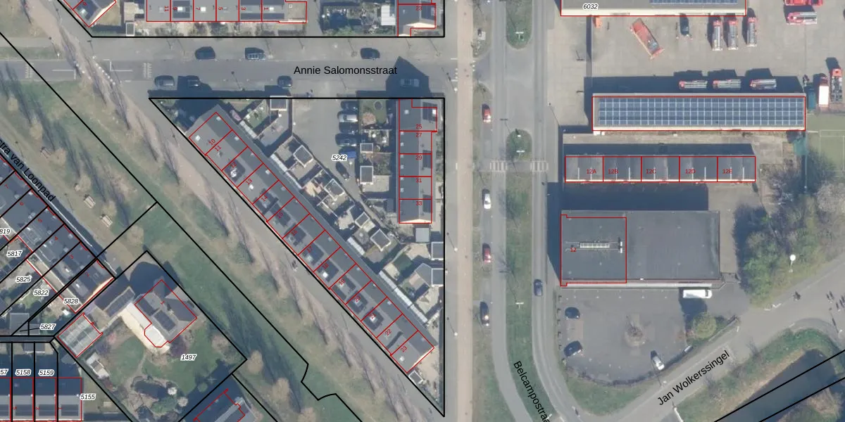 Belcampostraat 33 is gelegen op kadastraal perceel UTT00V5242. Deze kadastrale aanduiding is uniek en wordt gebruikt door het Kadaster om eigendomsrechten en andere zakelijke rechten vast te leggen. Het perceel maakt onderdeel uit van de kadastrale gemeente Utrecht.