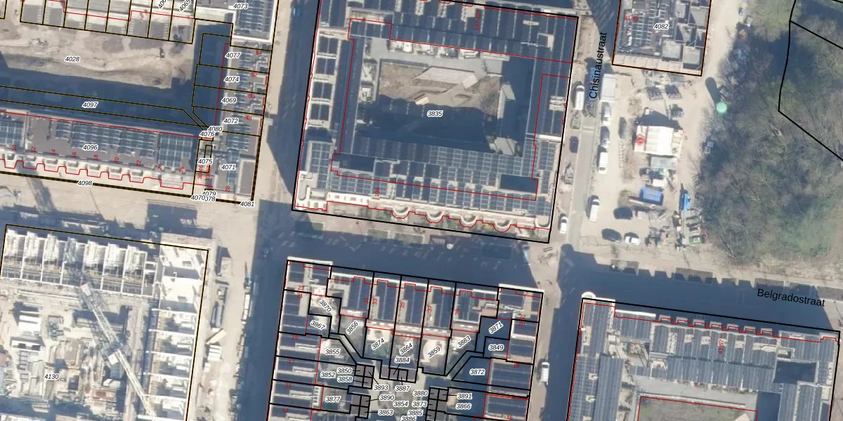 Het perceel waarop Belgradostraat 112 staat heeft een oppervlakte van 3325 m². Dit is een zeer groot perceel. De perceeloppervlakte wordt geregistreerd door het Kadaster. Gedetailleerde informatie over de maten van dit perceel kunt u vinden in het rapport Kadastrale kaart met maatvoering van Belgradostraat 112.