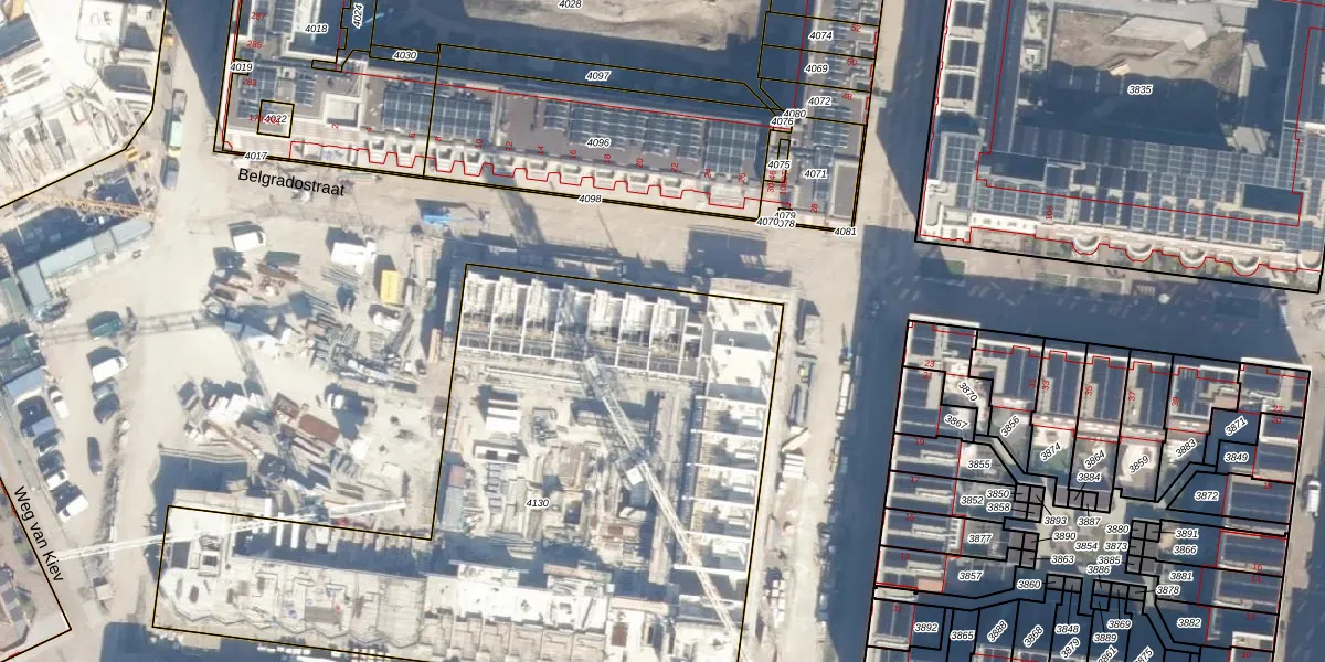 Het perceel waarop Belgradostraat 23-G staat heeft een oppervlakte van 3646 m². Dit is een zeer groot perceel. De perceeloppervlakte wordt geregistreerd door het Kadaster. Gedetailleerde informatie over de maten van dit perceel kunt u vinden in het rapport Kadastrale kaart met maatvoering van Belgradostraat 23-G.