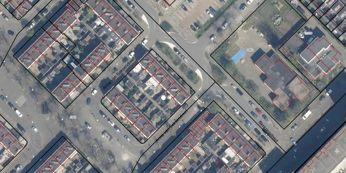 Het perceel waarop Berezinadreef 16 staat heeft een oppervlakte van 1512 m². Dit is een zeer groot perceel. De perceeloppervlakte wordt geregistreerd door het Kadaster. Gedetailleerde informatie over de maten van dit perceel kunt u vinden in het rapport Kadastrale kaart met maatvoering van Berezinadreef 16.