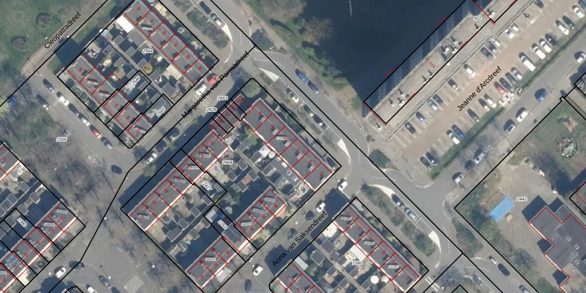 Het perceel waarop Berezinadreef 30 staat heeft een oppervlakte van 2450 m². Dit is een zeer groot perceel. De perceeloppervlakte wordt geregistreerd door het Kadaster. Gedetailleerde informatie over de maten van dit perceel kunt u vinden in het rapport Kadastrale kaart met maatvoering van Berezinadreef 30.