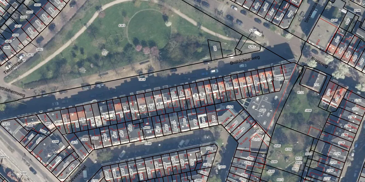 Het perceel waarop Bethlehemweg 37 staat heeft een oppervlakte van 50 m². Dit is een klein perceel. De perceeloppervlakte wordt geregistreerd door het Kadaster. Gedetailleerde informatie over de maten van dit perceel kunt u vinden in het rapport Kadastrale kaart met maatvoering van Bethlehemweg 37.