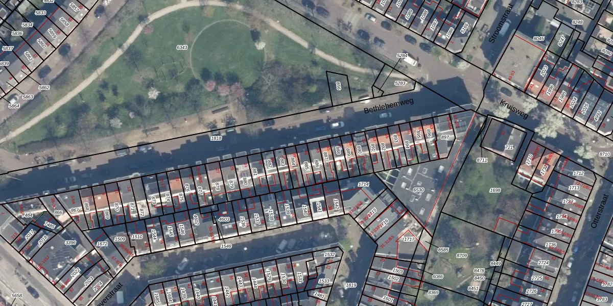 Het perceel waarop Bethlehemweg 41 staat heeft een oppervlakte van 51 m². Dit is een klein perceel. De perceeloppervlakte wordt geregistreerd door het Kadaster. Gedetailleerde informatie over de maten van dit perceel kunt u vinden in het rapport Kadastrale kaart met maatvoering van Bethlehemweg 41.
