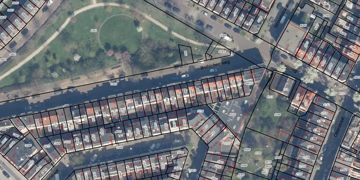 Het perceel waarop Bethlehemweg 45 staat heeft een oppervlakte van 51 m². Dit is een klein perceel. De perceeloppervlakte wordt geregistreerd door het Kadaster. Gedetailleerde informatie over de maten van dit perceel kunt u vinden in het rapport Kadastrale kaart met maatvoering van Bethlehemweg 45.
