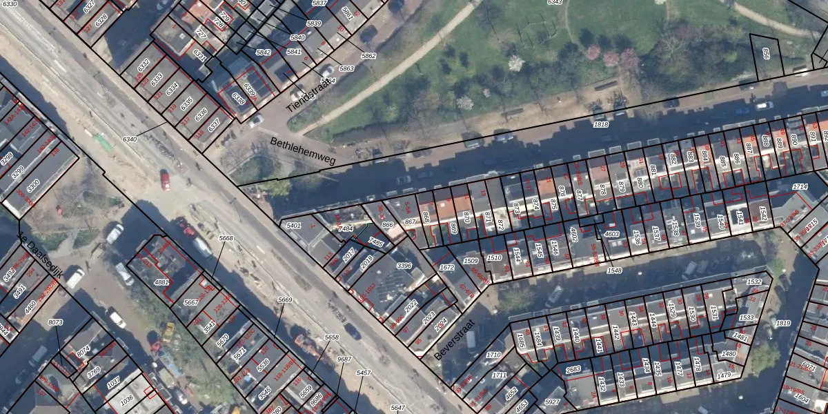 Het perceel waarop Bethlehemweg 5 staat heeft een oppervlakte van 70 m². Dit is een klein perceel. De perceeloppervlakte wordt geregistreerd door het Kadaster. Gedetailleerde informatie over de maten van dit perceel kunt u vinden in het rapport Kadastrale kaart met maatvoering van Bethlehemweg 5.
