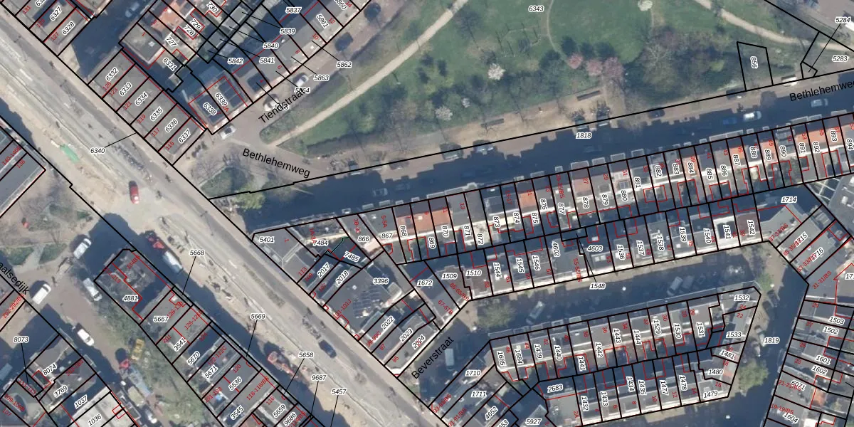 Het perceel waarop Bethlehemweg 9 staat heeft een oppervlakte van 57 m². Dit is een klein perceel. De perceeloppervlakte wordt geregistreerd door het Kadaster. Gedetailleerde informatie over de maten van dit perceel kunt u vinden in het rapport Kadastrale kaart met maatvoering van Bethlehemweg 9.