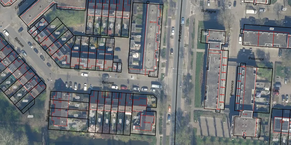 Het perceel waarop Betuwe 134 staat heeft een oppervlakte van 1021 m². Dit is een zeer groot perceel. De perceeloppervlakte wordt geregistreerd door het Kadaster. Gedetailleerde informatie over de maten van dit perceel kunt u vinden in het rapport Kadastrale kaart met maatvoering van Betuwe 134.