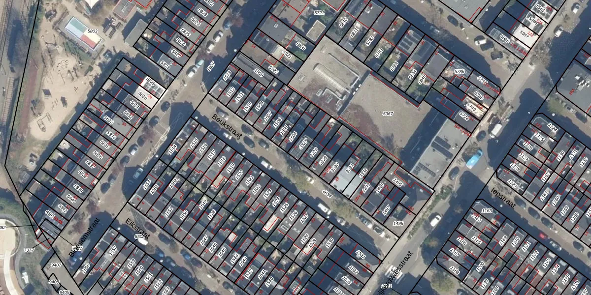 Het perceel waarop Beukstraat 20 staat heeft een oppervlakte van 82 m². Dit is een klein perceel. De perceeloppervlakte wordt geregistreerd door het Kadaster. Gedetailleerde informatie over de maten van dit perceel kunt u vinden in het rapport Kadastrale kaart met maatvoering van Beukstraat 20.